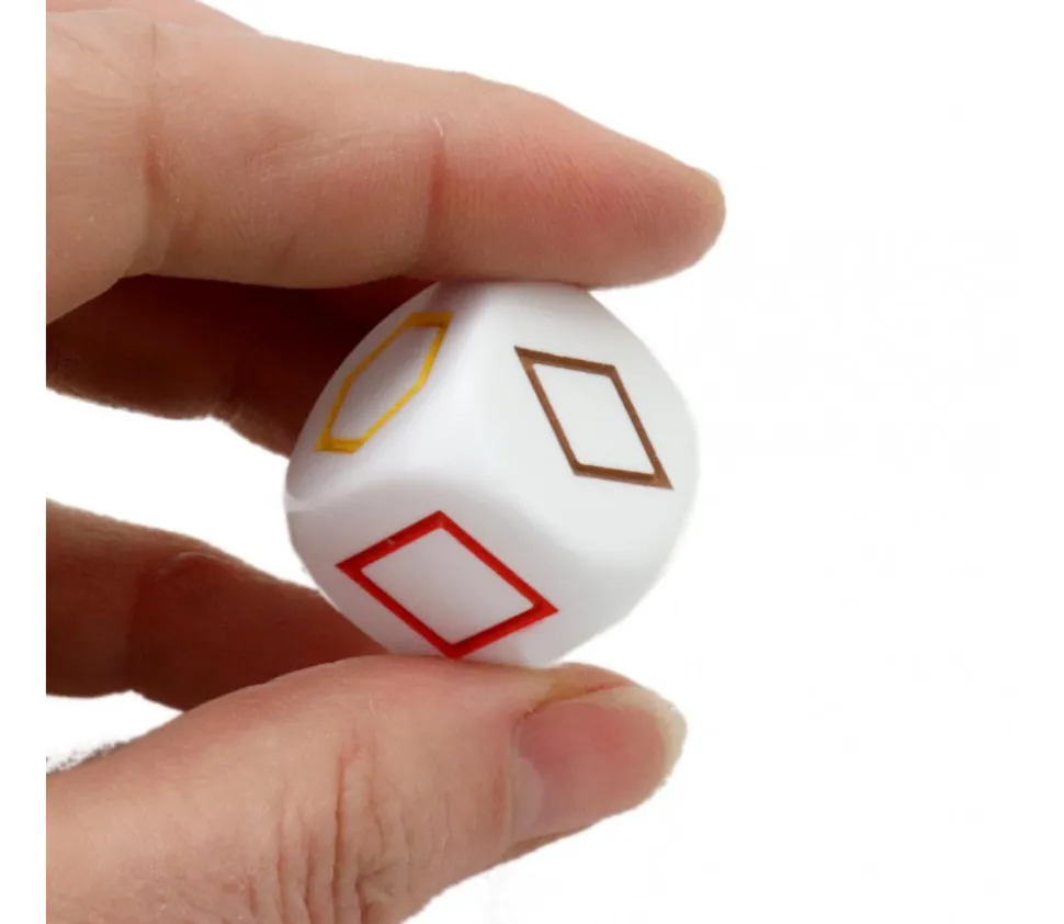 Dé blanc de 2.2 cm de côté avec les formes : trapèze, losange, carré…