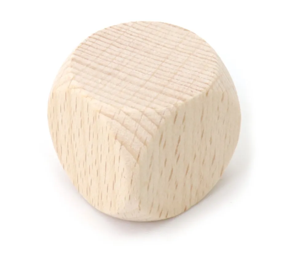 Accessoires en bois aux coins arrondis. Taille de 30 mm de côté pour faciliter la personnalisation de vos dés pour jeux.