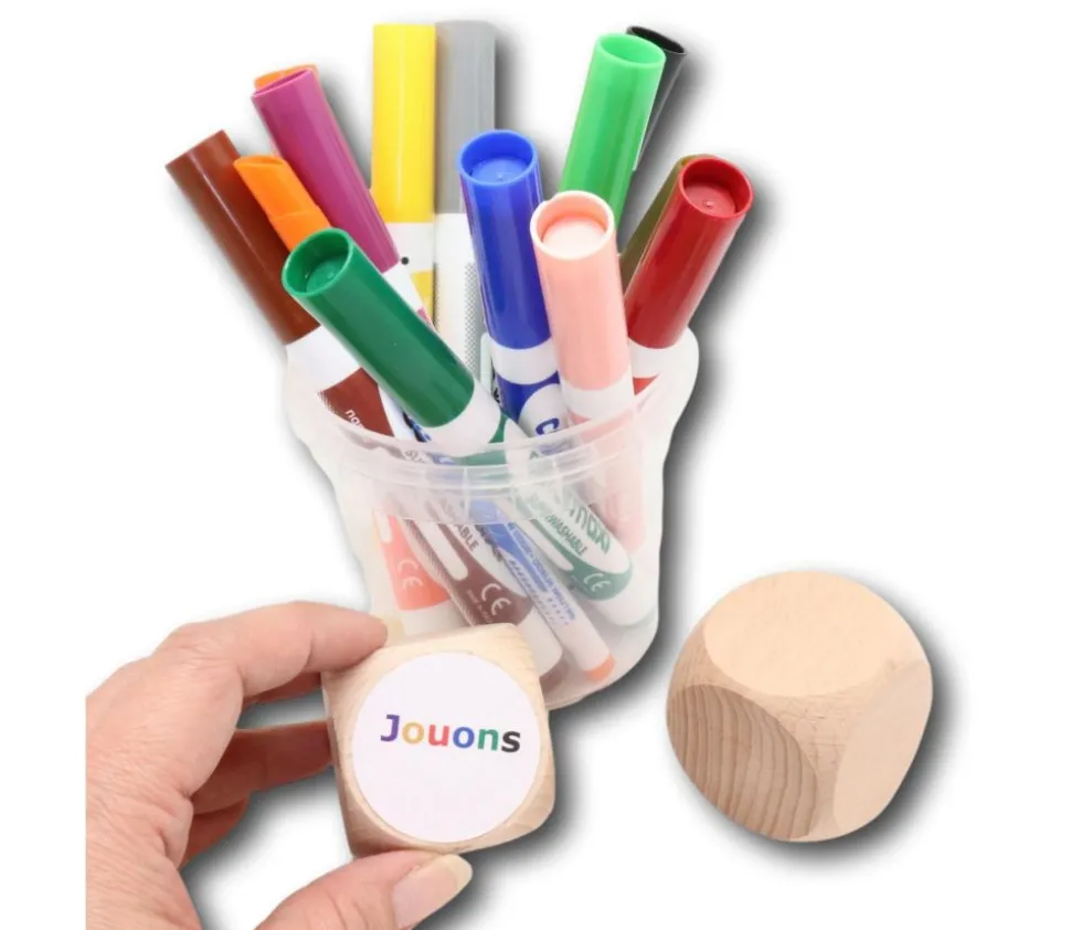 Dé de taille géante en bois naturel 42 mm à personnaliser. Vous pouvez mettre l’inscription de votre choix pour créer votre propre jeu de société. Possibilité d’inscrire avec n’importe quel crayon ou peinture. Cependant pour une meilleure conservation dans le temps, nous vous conseillons des ou de l’acrylique (mais plus difficile car moins précis). Possibilité de revernir le dé. Ce dé est fabriqué dans le Jura (France).