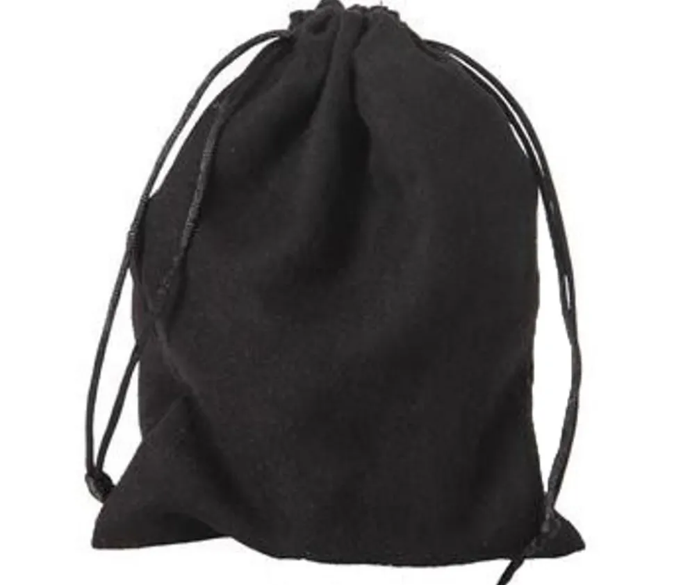 Poche aspect velours noir de 200 x 150 mm avec ficelle de serrage. Sac en tissu aspect velours avec cordon pour ranger vos accessoires.