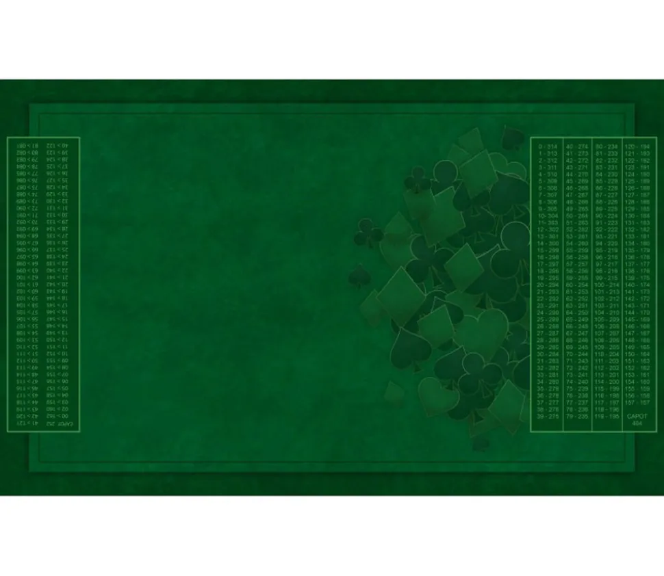Grand tapis de jeu pour jeux de cartes Belote avec grilles des points imprimées.