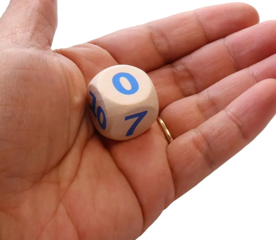 Dé à jouer en bois avec marquage des nombres : 0 7 8 9 10 11