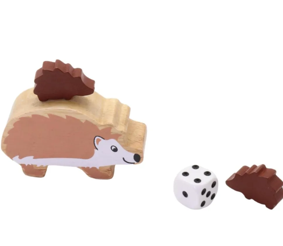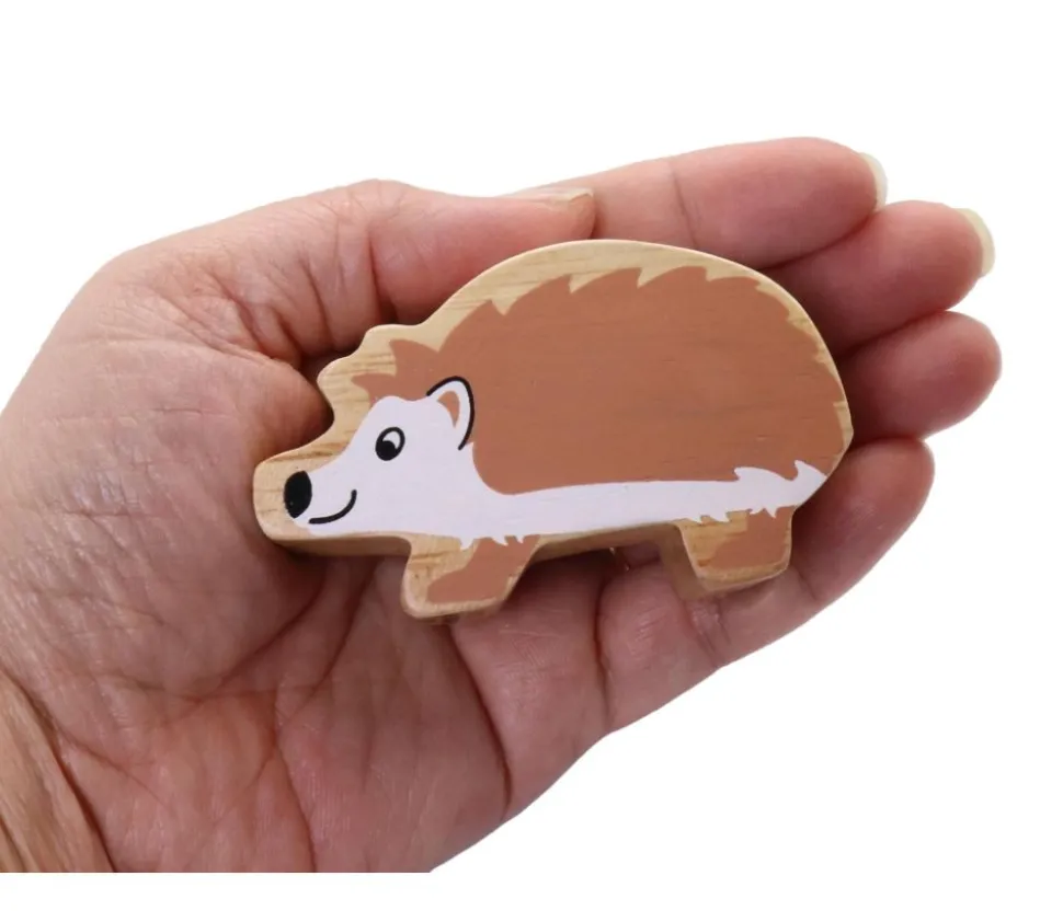 Hérisson en bois coloré et épais parfait pour les petites mains. Pion de jeu trop mignon avec son petit museau et son sourire en coin bien dessinés et ses couleurs tendres blanc et brun