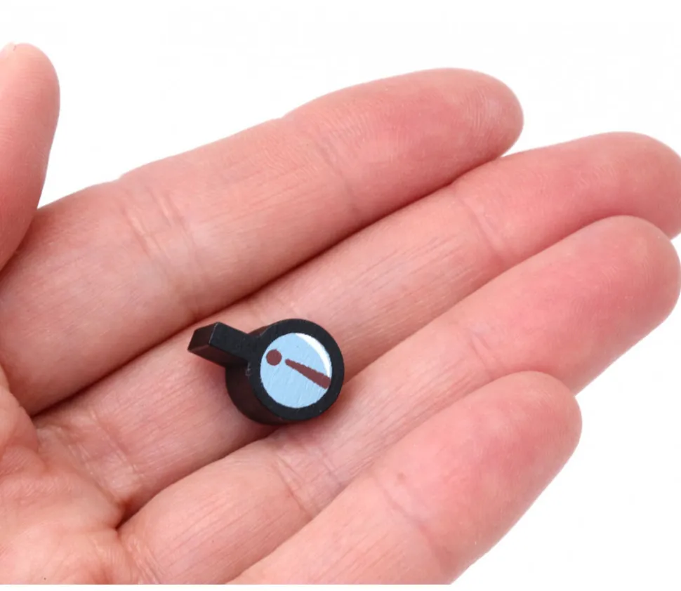 Pion de jeu loupe de 15 x 11 x 10 mm en bois. Loupe miniature en bois pour jouer au détective et rechercher les indices.