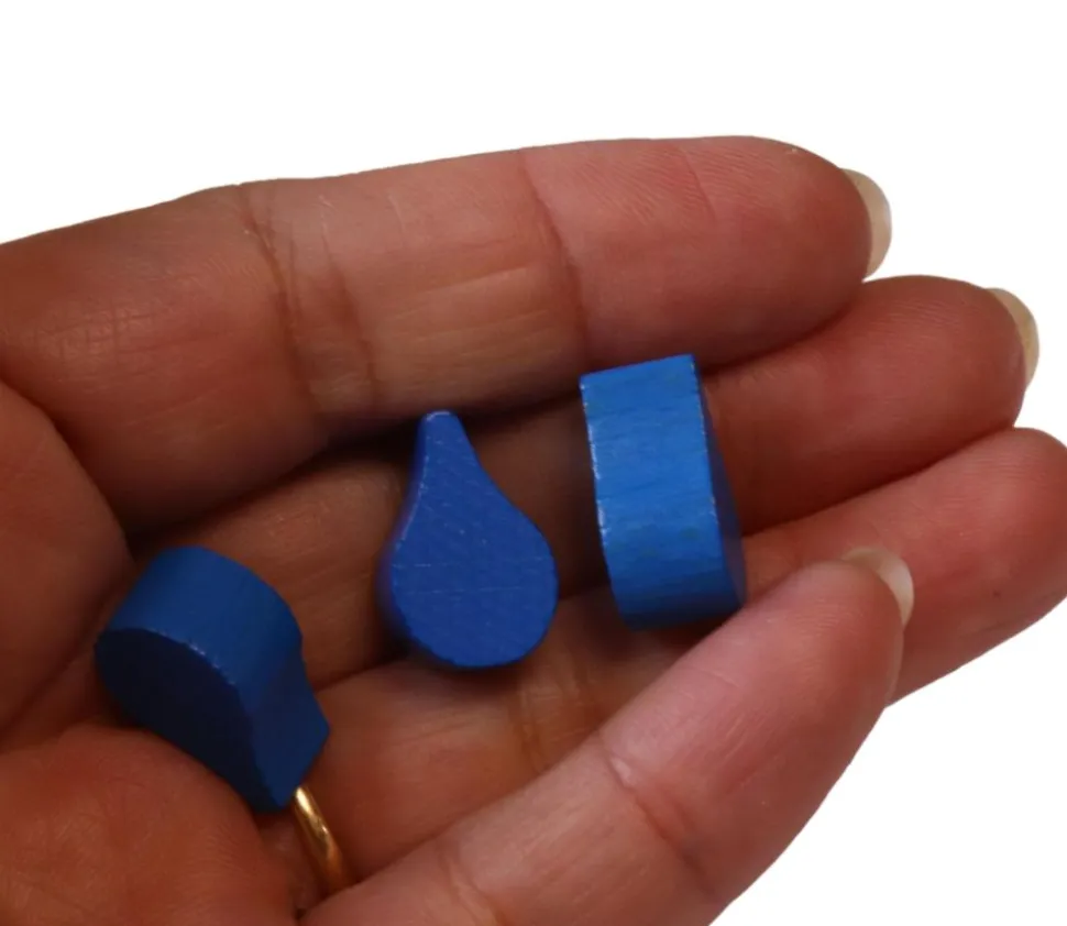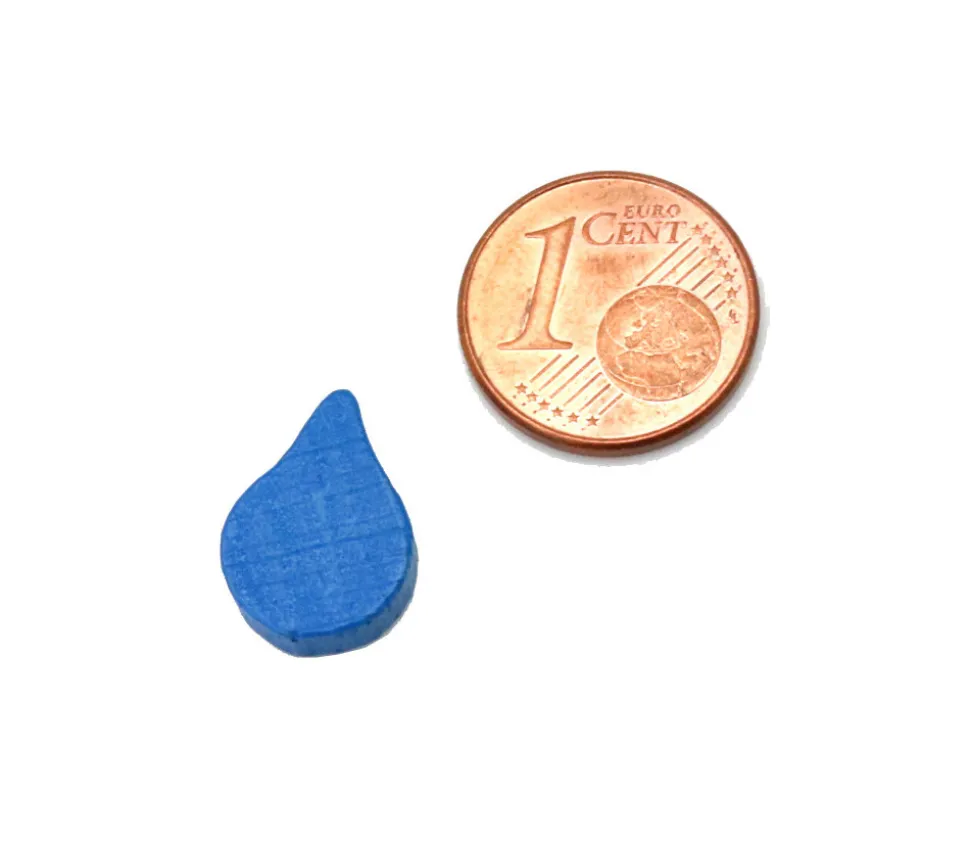 Pion eau en bois teinté en bleu à utiliser comme ressource pour vos jeux de société. Pièces idéales pour créer vos jeux, décorations ou autres.