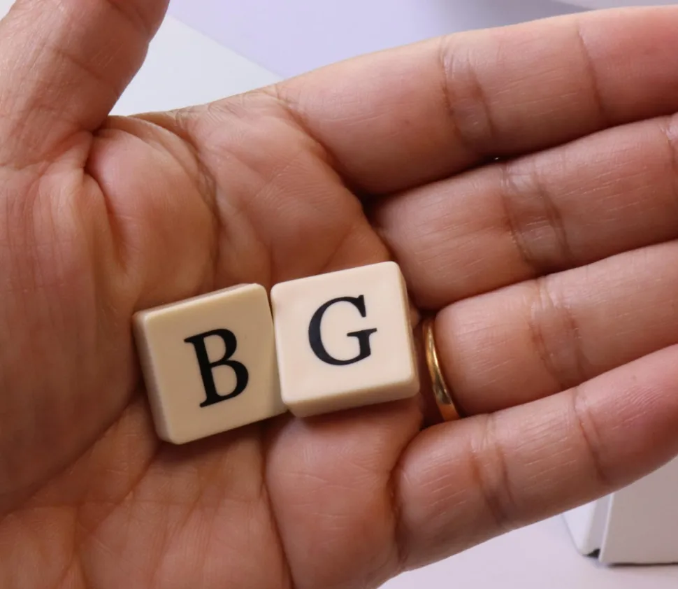 Jeton carré avec impression d’une lettre en noir sur une face.