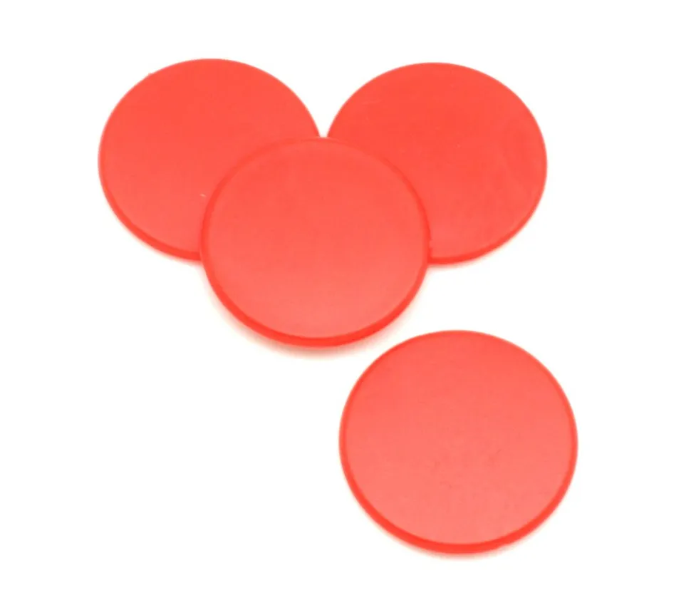 Jetons de jeux en plastique de 38 mm de diamètre et plat. (épaisseur 2.5 mm)
