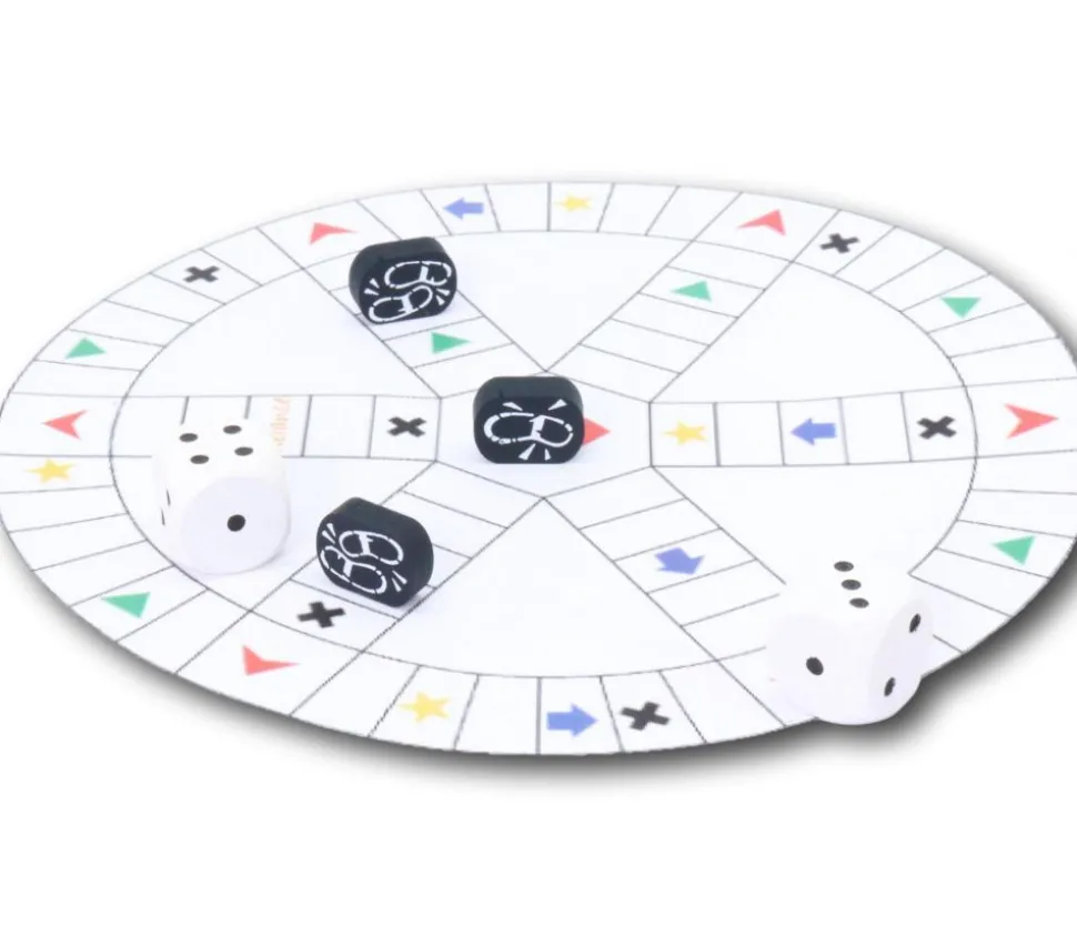 Un côté avec 1 pied et l’autre avec 2 pieds. Pièce de jeu pour jeu de société ou d’enquête.