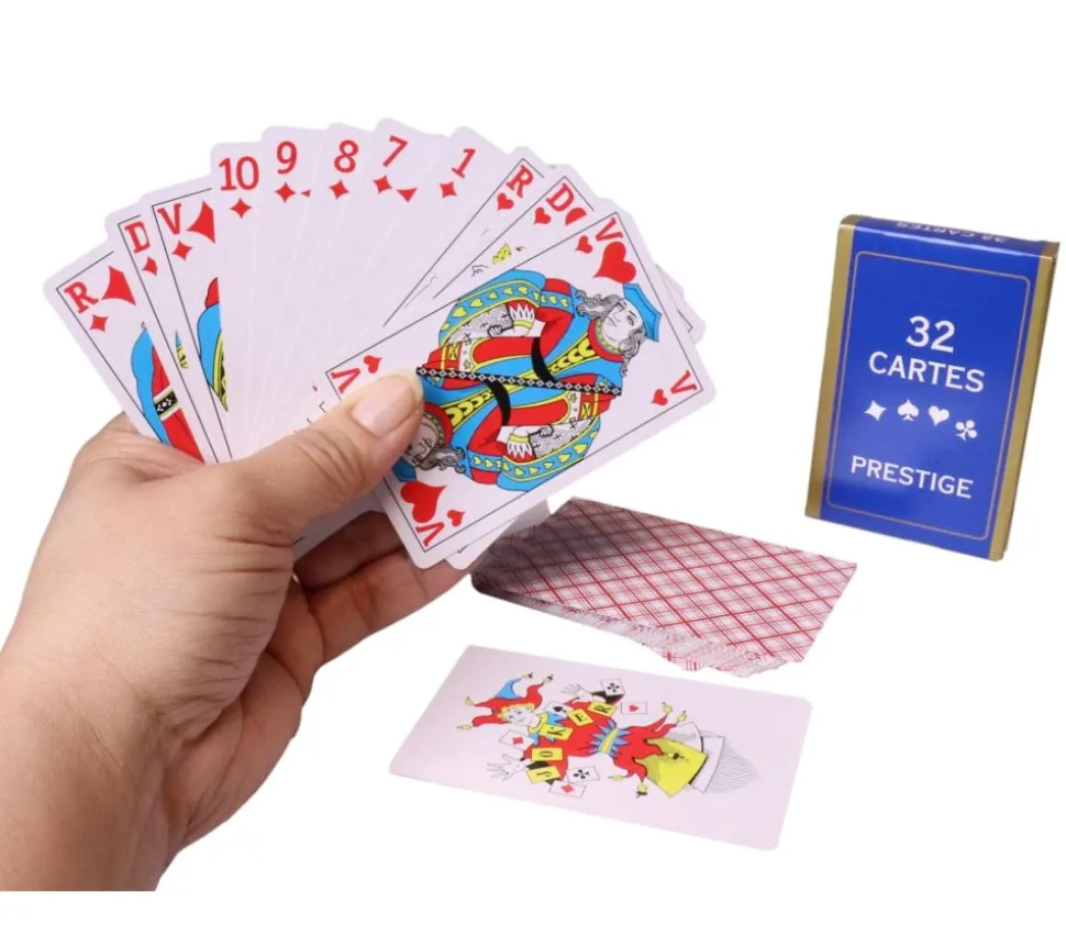 Jeu de cartes à jouer françaises Belote 32 cartes plastifiées qualité prestige.