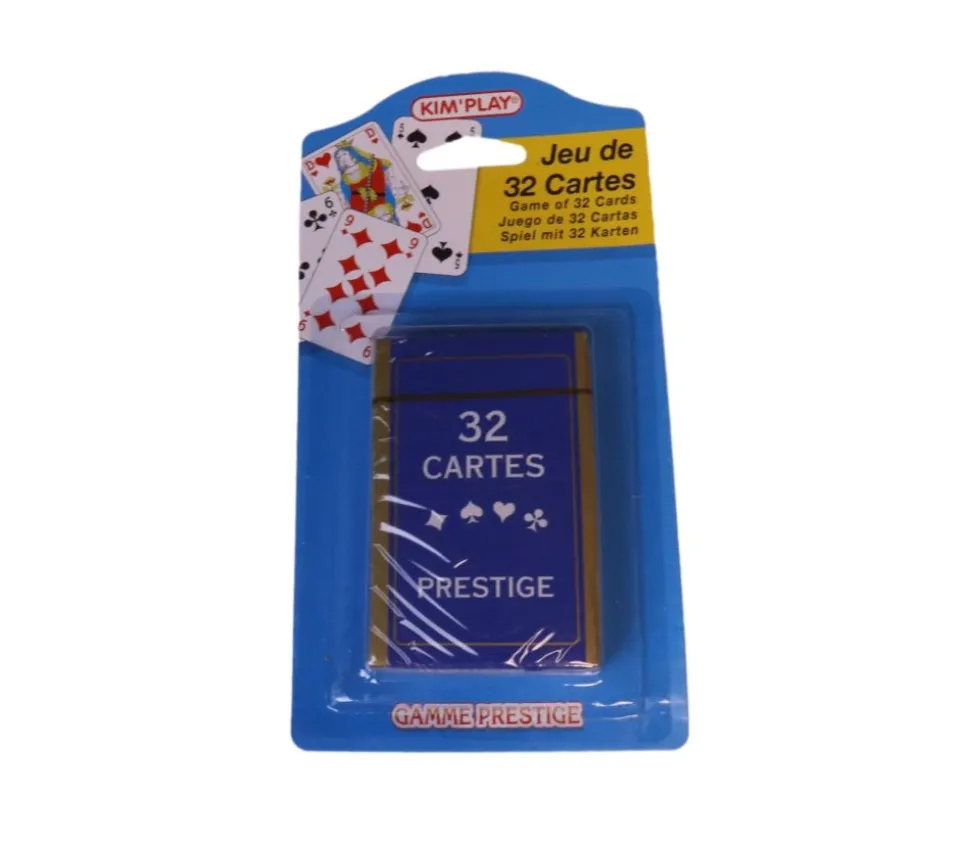 Composition de ce jeu de cartes classique : 32 cartes à jouer dans un étui carton pour le rangement.