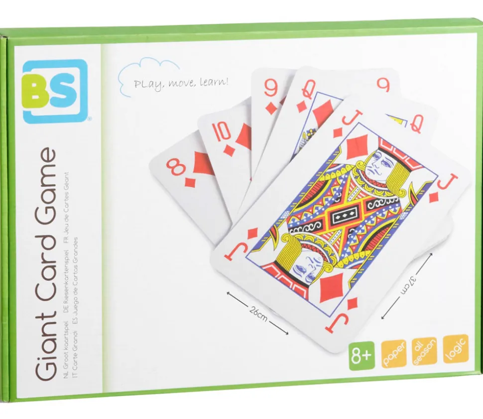 54 cartes XXL pour jouer à l’intérieur ou à l’extérieur. Jeu géant pour organiser des parties de cartes rigolotes.