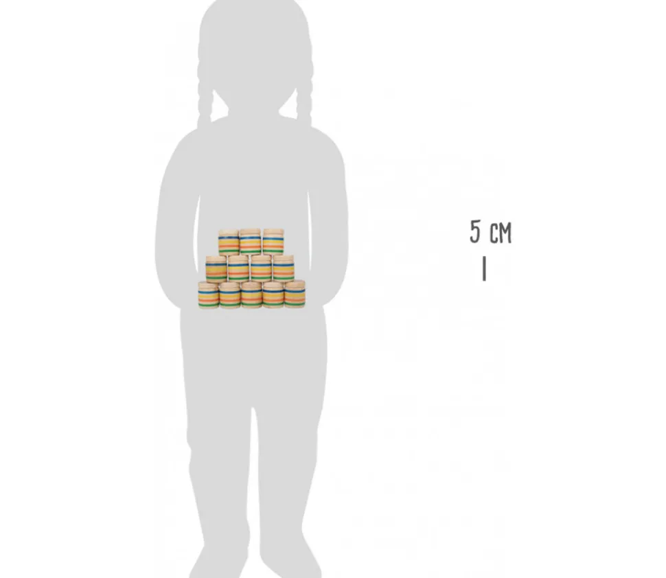 12 boites en bois avec des contenus variés (6 paires). Taille des boites : hauteur 5 cm et diamètre 4 cm.