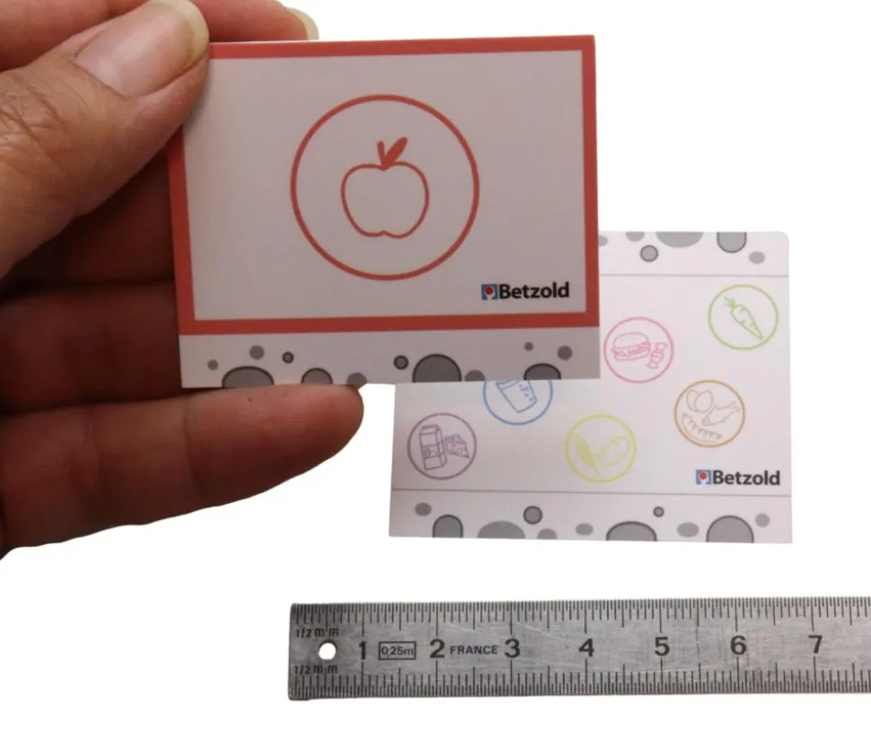 – 16 cartes « Groupe d’aliment » (8 en français au verso anglais au recto, 8 en allemand au recto symbole au dos)