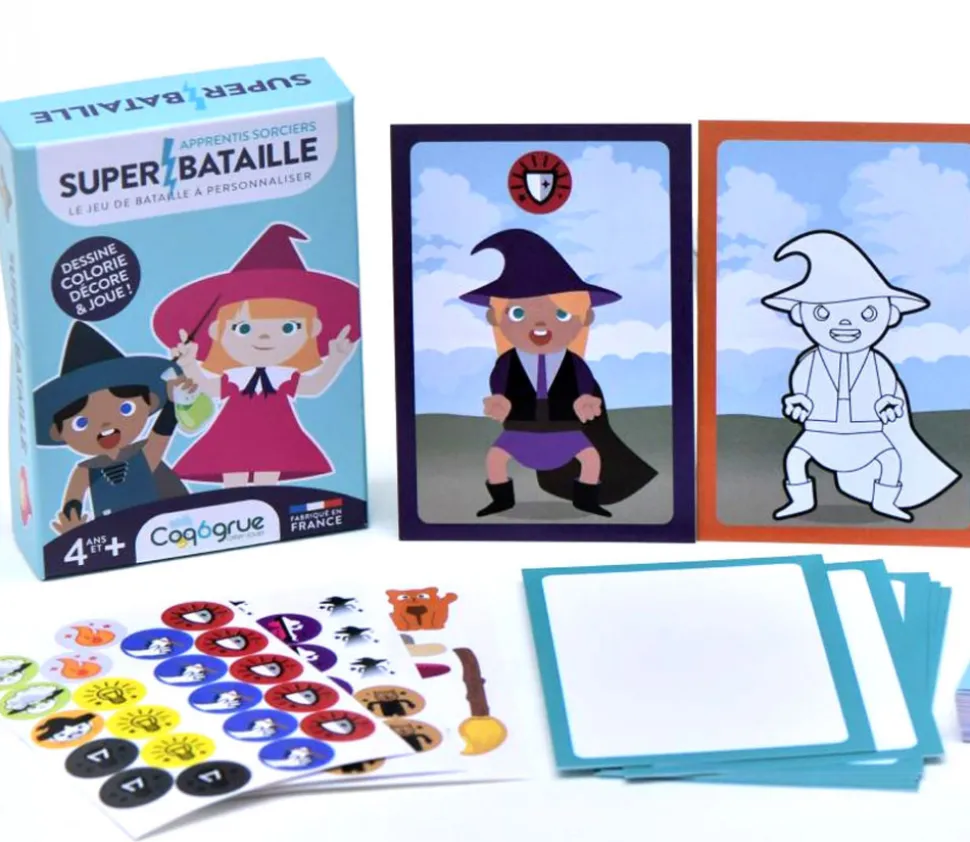 Jeu de bataille magique à réinventer avec des sorciers et sorcières à décorer. Ajoutez des sorts grâce aux autocollants pour modifier leur pouvoir.