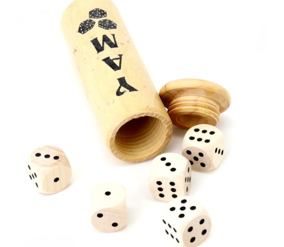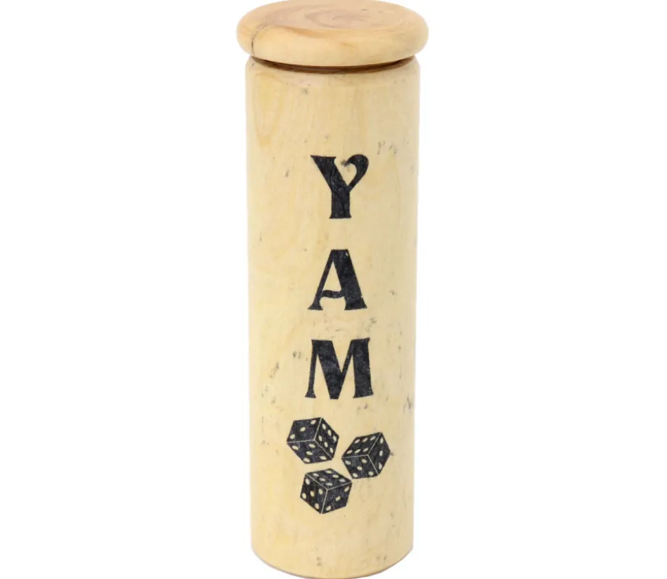 Très pratique, un jeu de yam avec son tube de rangement pour vos vacances, jeux à l’apéro ou mini jeu avec les enfants.