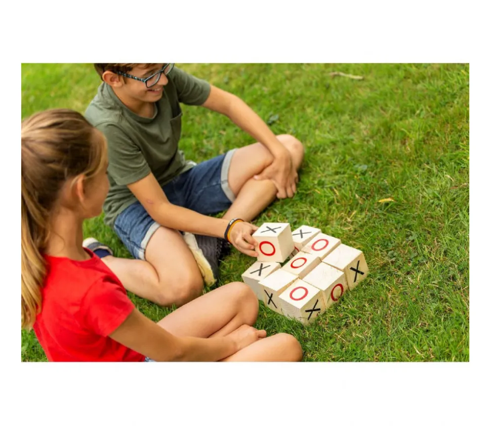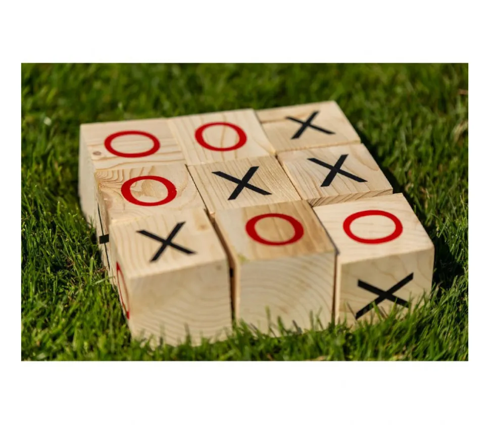 Jeu de Tic Tac Toe ou morpion géant. Alignez 3 symboles identiques et c’est gagné ! Un lot comprenant 9 gros cubes en bois avec marquage des symboles. Matériel pour vos animations, fêtes et kermesses. Le set comprend : 9 cubes en bois de 7 cm, marqués d’un rond rouge sur 2 faces et d’une croix noire sur 2 autres faces. Un grand classique des jeux en duo. Le gagnant est le premier à aligner ses 3 symboles identiques.