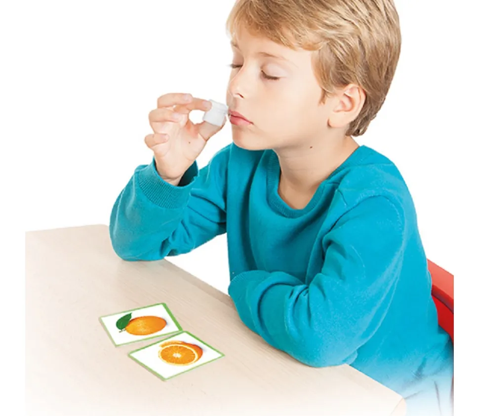 Association vue/odorat, raisonnement logique, mémoire olfactive. Outil de travail utilisé dans la pédagogie Montessori.