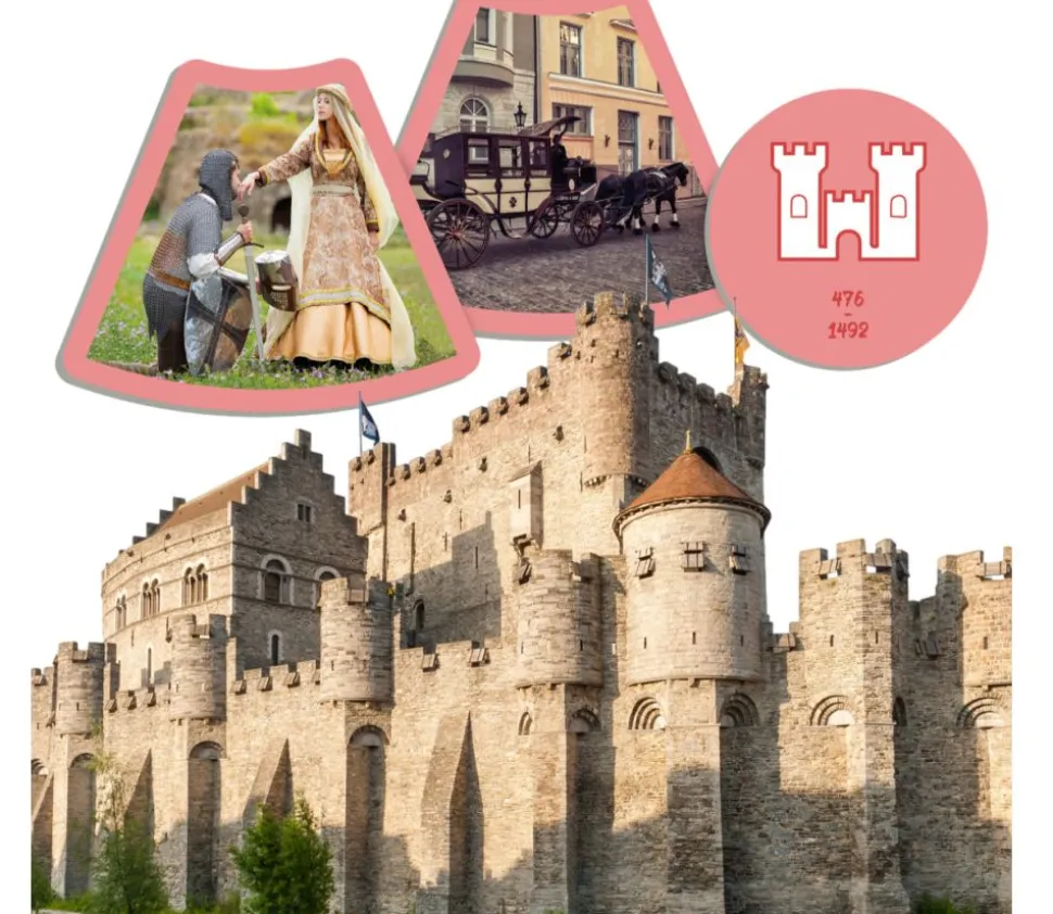 - 5 fiches circulaires « fiche étapes » (période couverte par chaque étape) : Préhistoire, Antiquité, Moyen-Age, Age moderne, Age contemporain