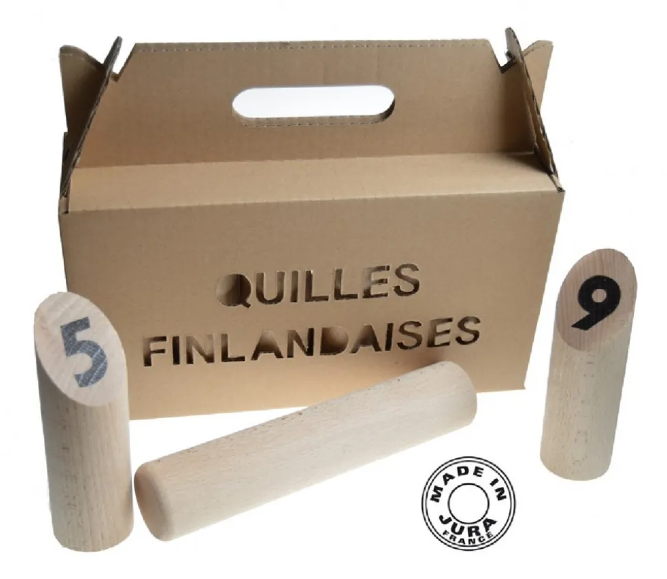 Jeu de quilles finlandaises fabriquées en France. Jeu d’adresse traditionnel en Finlande pour jouer en extérieur. Jeu de plein air facile pour toute la famille. Un incontournable des jeux dans les kermesses et les fêtes de famille.