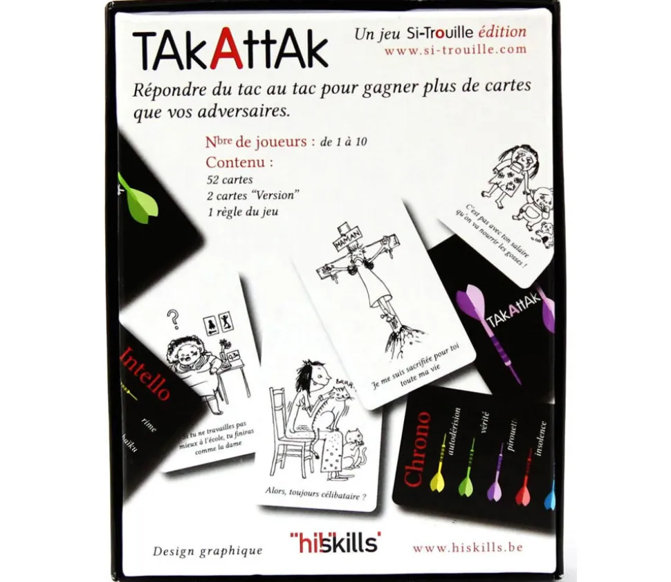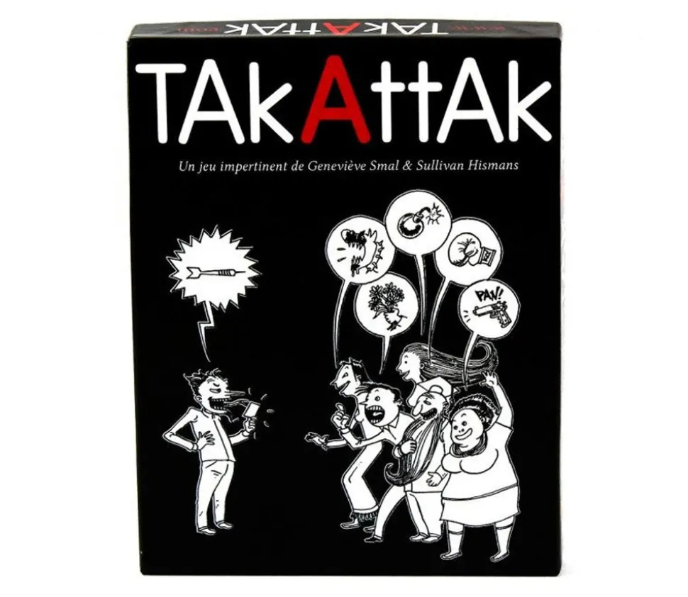 TAKATTAK classique, jeu coopératif pour apprendre à répliquer quand on nous fait une remarque méchante ou moqueuse. Un jeu qui permet de mieux manier notre belle langue française et qui permet de désamorcer des situations parfois compliquées dans la vie de tous les jours.