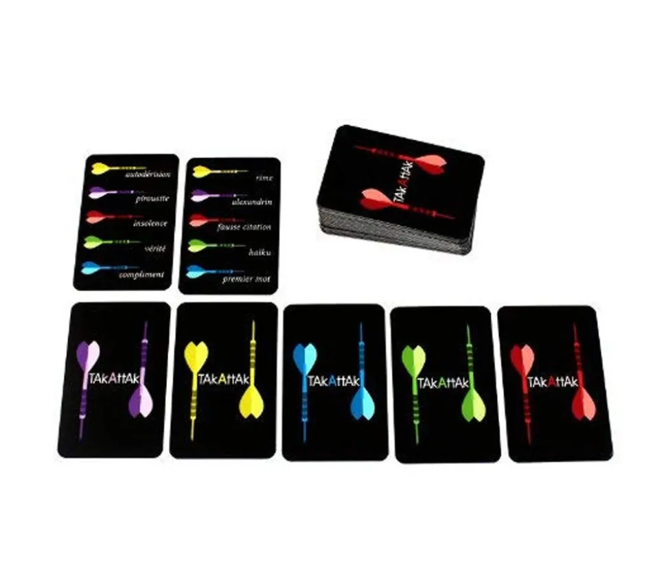 Jeu TAKATTAK CLASSIQUE. Jeu de langage et de réplique pour apprendre à ne plus se laisser marcher sur les pieds. Un jeu pour se créer de la répartie et pouvoir répondre du « tac au tac » aux personnes qui font une remarque ou un commentaire pas sympa.