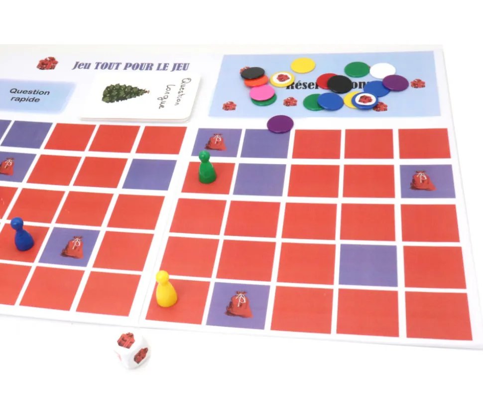 Pack d’accessoires et composants de jeux pour créer vos jeux de société chez vous à la maison. Personnalisez les accessoires, imprimez le plateau et la boite pour créer un jeu sur le thème de votre choix.