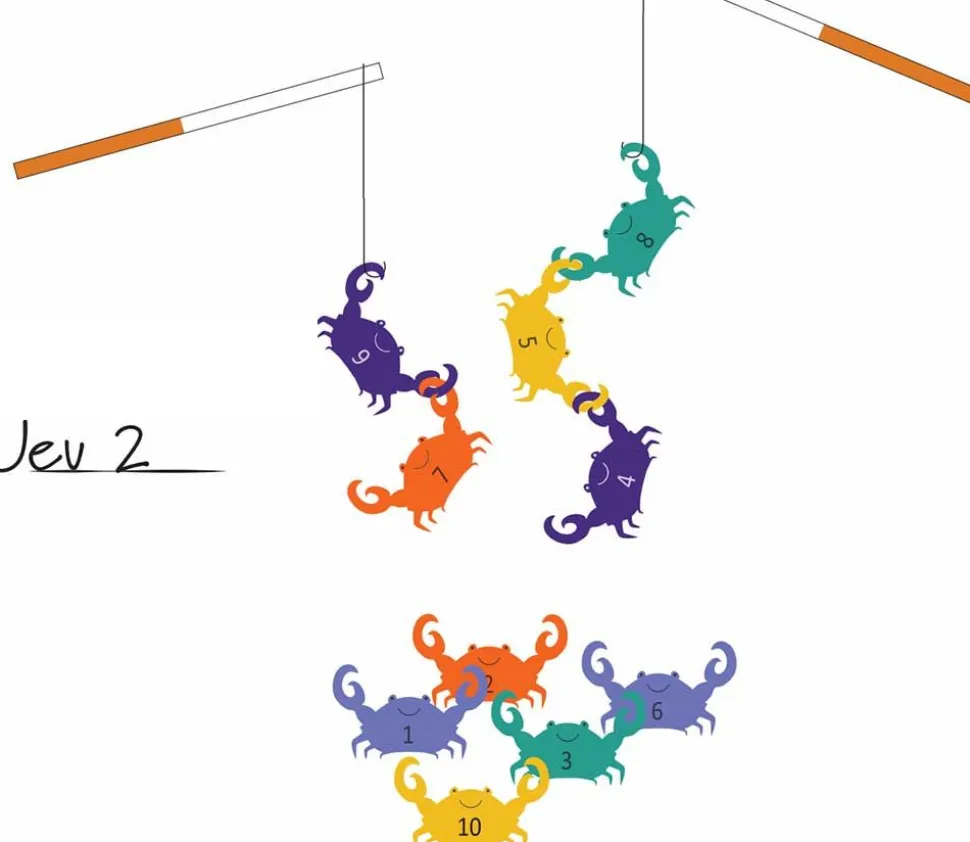 Avec 2 cannes à pêches et 10 crabes de couleur, vous pouvez jouer et imaginer de nombreux jeux rigolos pour les enfants.
