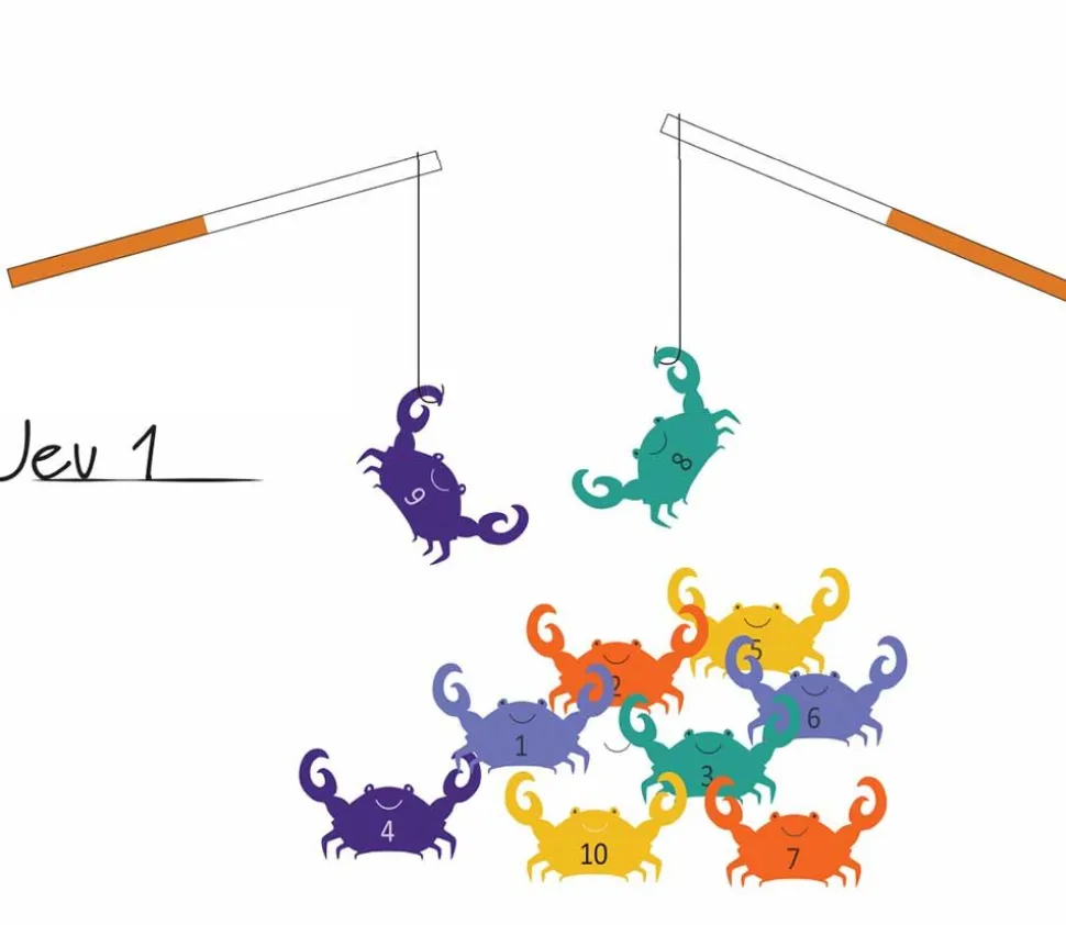 Plusieurs règles de jeu possibles : pêche en fonction des couleurs, pêche multiple (attrapez tous les crabes), pêche coopérative (les enfants attrapent ensemble les crabes)…
