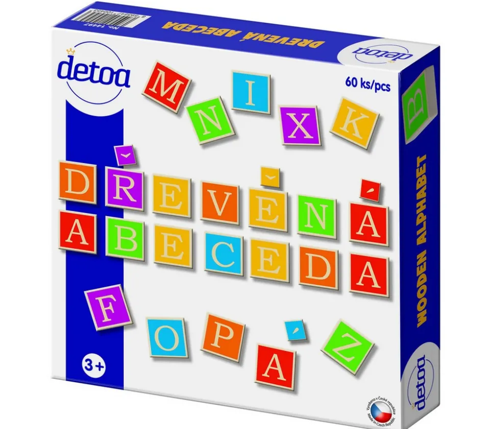 Retrouvez l’alphabet au complet dans cette boite de jeux pour enfant. Grandes lettres sur pavés de 3 cm de coté et fond coloré, les points de ponctuation et les accents sur les petits cubes de 1.5 cm de coté.