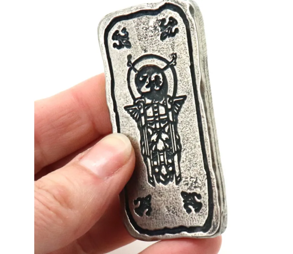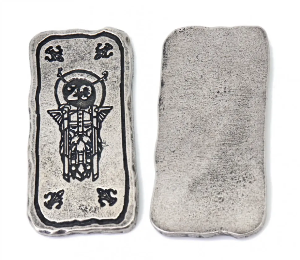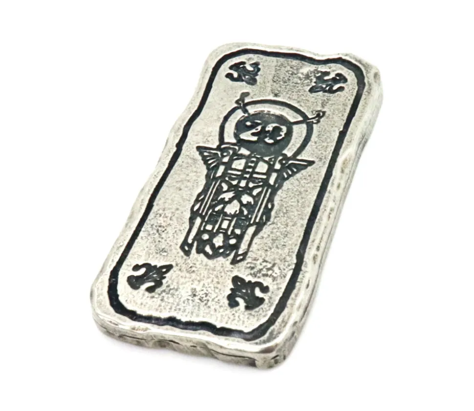 Pièce en métal couleur argenté gravé. Lingot à utiliser comme jeton de récompense dans vos jeux de stratégie ou jeux de rôle. Pièce rectangulaire de 67 x 33 mm. Epaisseur de 4 mm. Poids 50 g. Silver bar avec gravage recto et verso uni. Jetons « coins » pour vos jeux de rôle et de société. Pièce en métal rectangulaire de 6.7 x3.3 cm.Très belle réalisation en métal argenté pour vos jeux de société. Vente à l’unité.