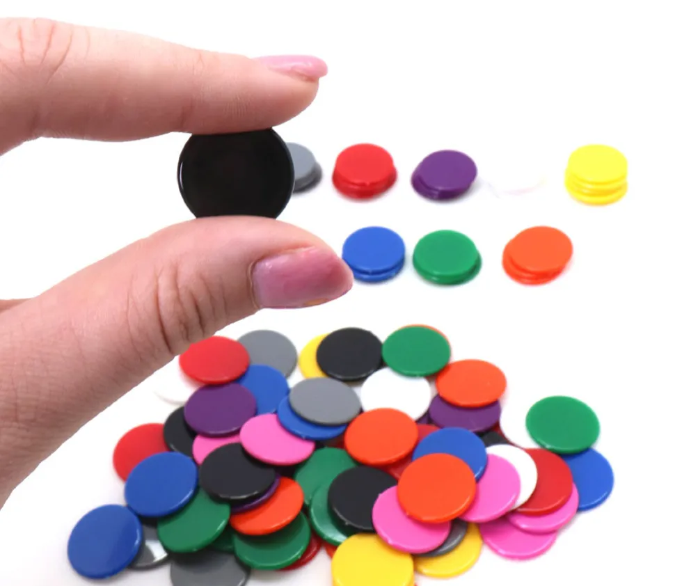 Set de 100 jetons en plastique plats de 2 cm de diamètre.