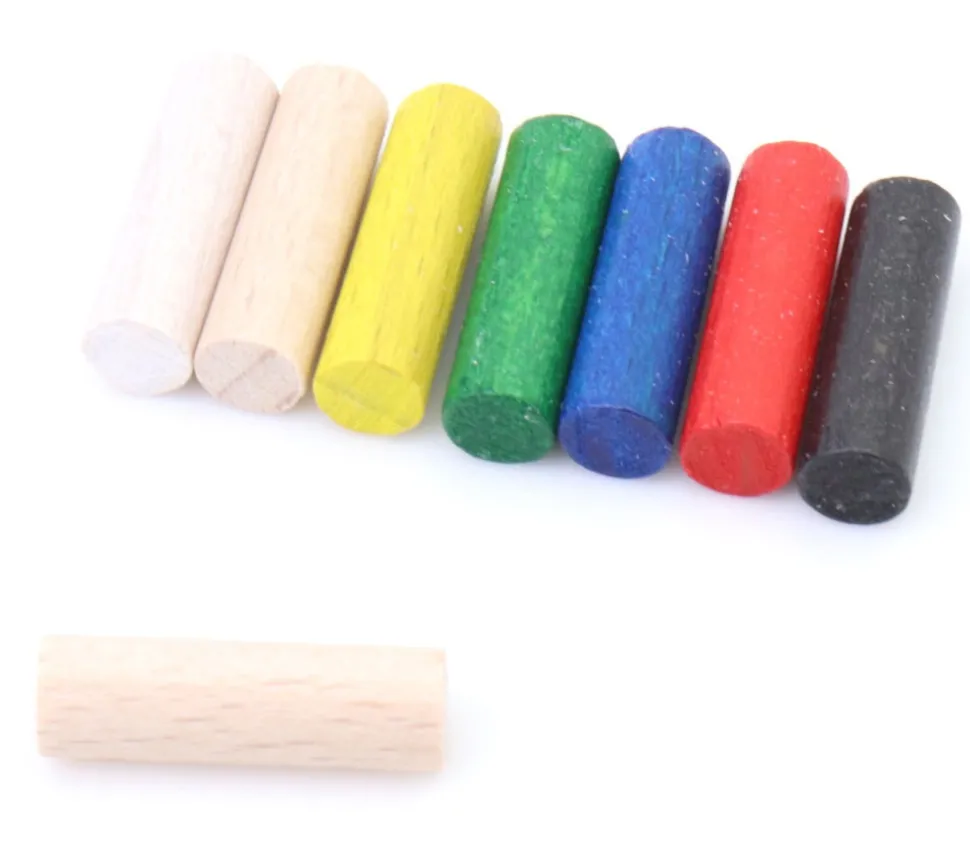 Cylindre tige allongée en bois couleur à choisir. Chevilles en bois longueur 20 mm et diamètre 6 mm. Tourillon à utiliser comme barrière de jeu, construction, accessoires de bricolage. Petites goupilles en bois pour réaliser de nombreuses constructions, des chemins, des barrières. En bois naturel. Vente à l’unité. Couleur à sélectionner entre bleu, rouge, jaune, vert, blanc, noir ou naturel.