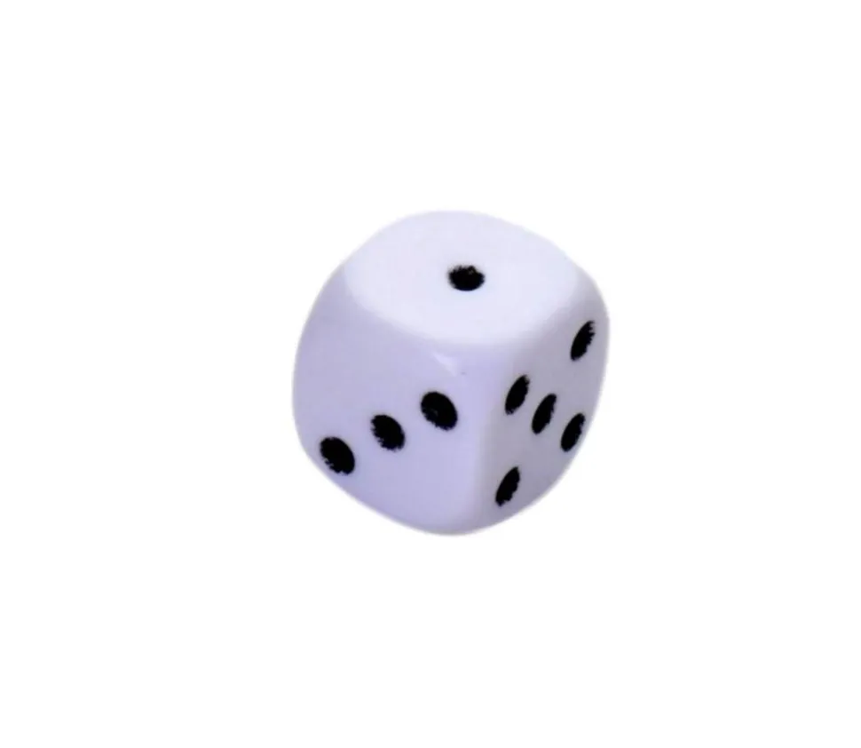 Dé blanc classique 1 x 1 cm de côté numérotés de 1 à 6 avec des points noirs. Dé de qualité.