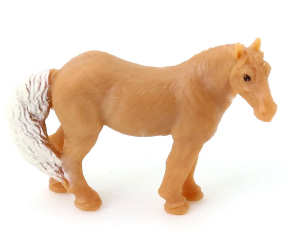 Miniature cheval palomino en plastique semi-mou de 2 cm de hauteur. Petit cheval jouet vendu à l’unité. Hauteur 2 cm – longeur 2,8 cm – largeur 0,6 cm