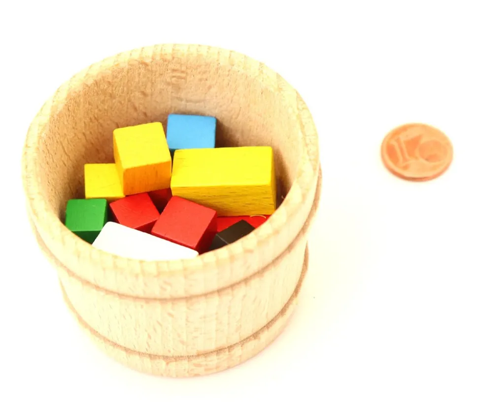 Mini panier en bois pour y glisser vos trésors : petits pions, dés, bijoux, bonbons… Baquet vide en bois de forme ronde. 4.5 cm de haut et 5.9 cm de diamètre. Coffret, décorations de table ou loisirs créatifs. Petit baquet en bois hêtre massif naturel pour y mettre vos pièces de jeux, dragées pour une communion, bonbons en décorations…