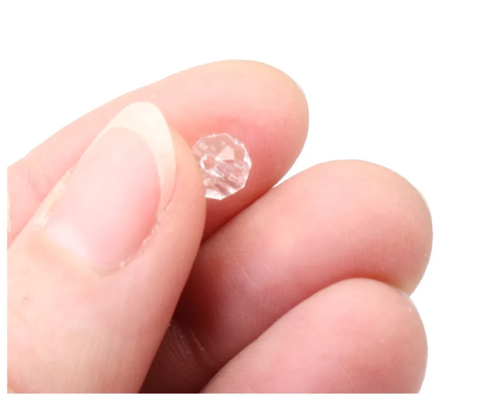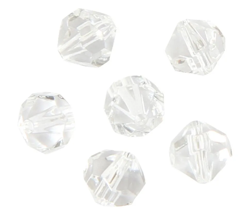 Mini boule cristal à facettes en plastique transparent percée.