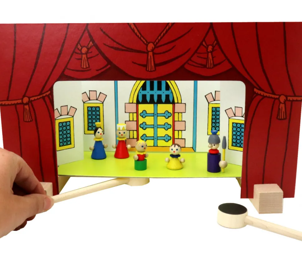 Un magnifique théâtre miniature en bois pour les enfants. Des petites marionnettes magnétiques à déplacer grâce à des baguettes aimantées. Les petits personnages se déplacent dans les différents décors et vous permettent de créer de belles histoires ou de reconstituer des contes connus.