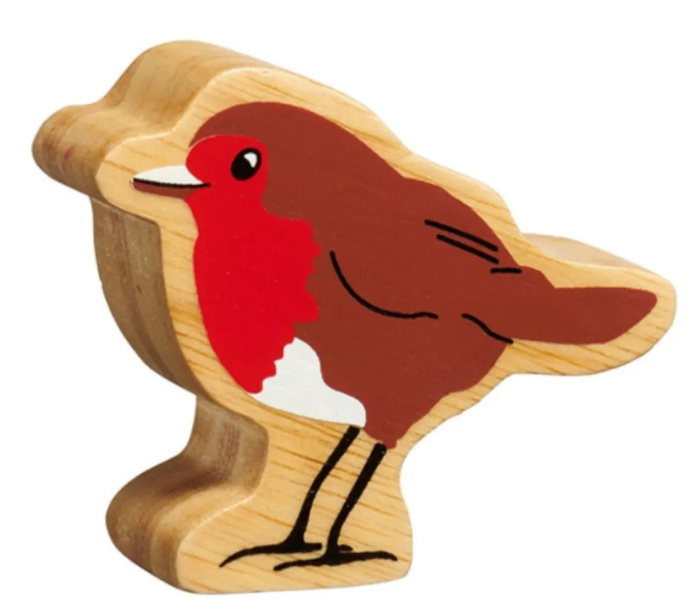 Oiseau en bois peint brun et rouge vendu à l’unité. Jouet pour créer un univers d’animaux miniatures ou pion sur plateau de jeux de société thématique.
