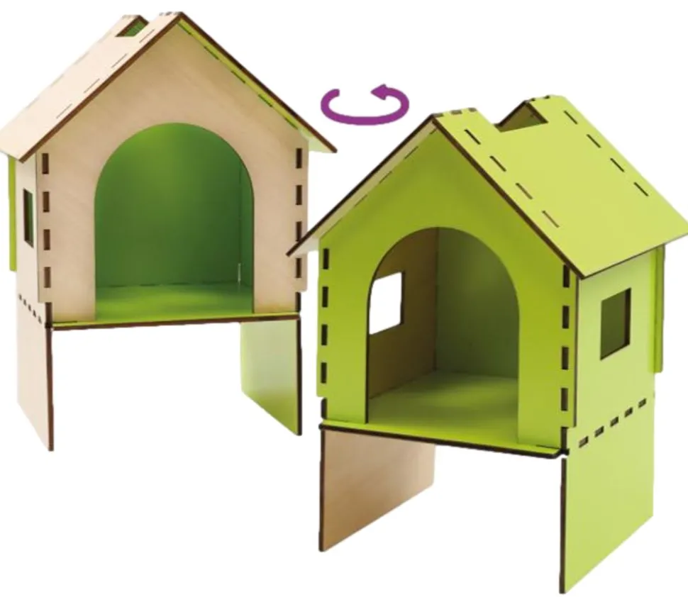 Le carton des fiches, ainsi que la maison en bois et les animaux proviennent de forêts durables.