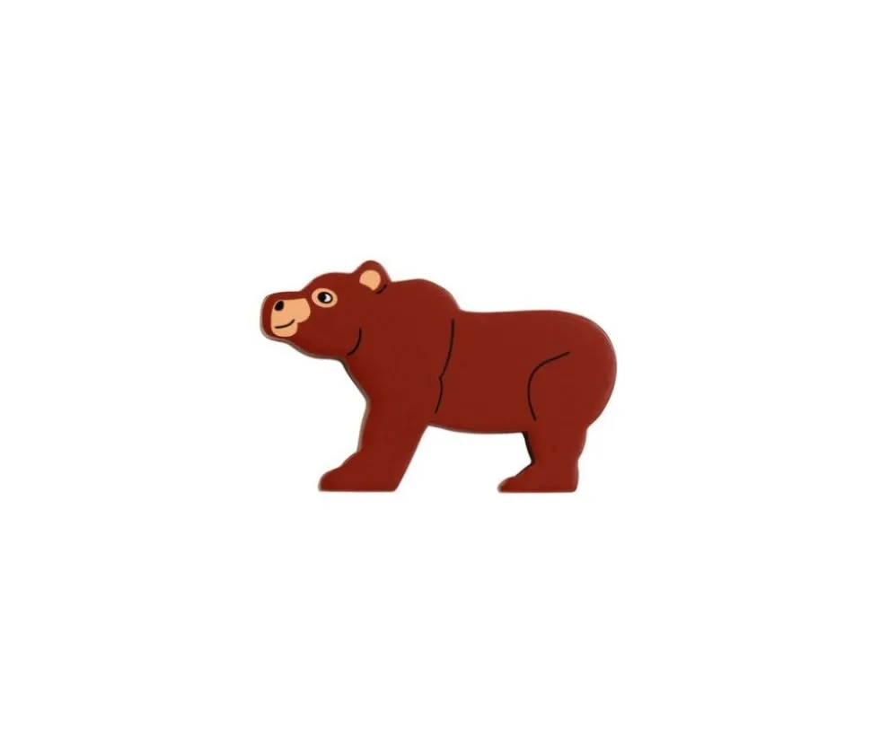 Pion ours brun en bois. Pion de jeu en bois très réaliste peint recto et verso. Petit ours brun en bois. Dimensions 88 x 57 x 15 mm. Animal sauvage peint en brun. Pion de jeux de société ou jouet pour créer un mini monde. A combiner avec d’autres animaux pour création de mini zoo en bois avec ses jouets issus du commerce équitable.