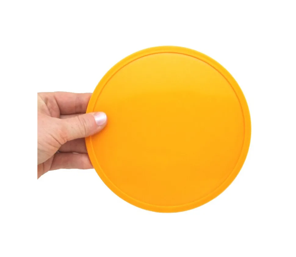 Pion en plastique jaune orange de 15 cm de diamètre et 0.8 cm de hauteur.