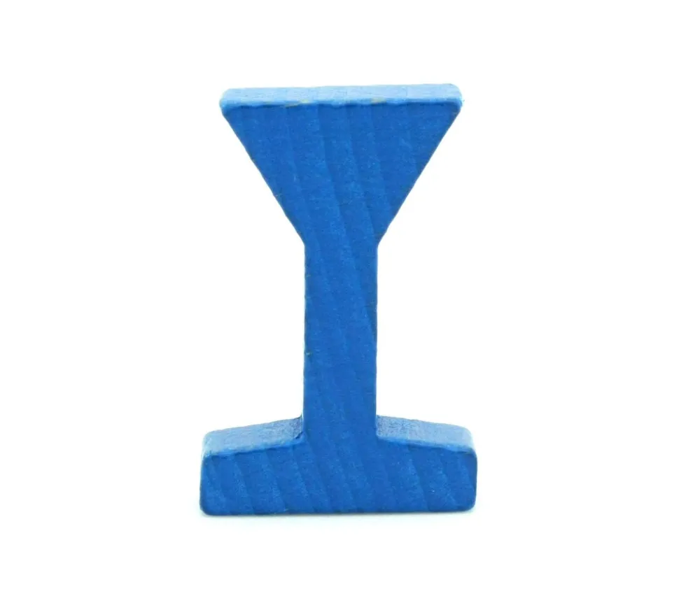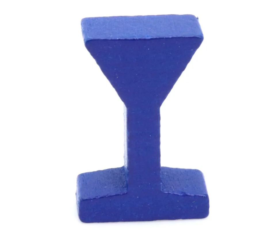 Pion de jeu bleu forme de panneau de signalisation ou forme de verre de vin. Mini pièce en bois à utiliser comme pions de jeux, maquettes ou décorations. Dimensions du pion de jeu 34 x 10 x 22 mm. Vous pouvez facilement le personnaliser en mettant un adhésif sur la partie haute du pion pour créer un panneau de code de la route
