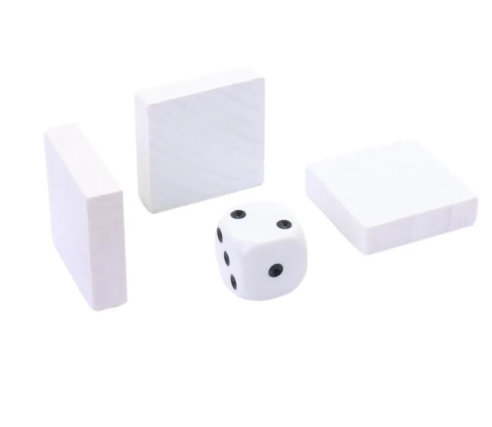 Couleurs disponibles pour les jetons carrés : rouge, vert, jaune, bleu, blanc, naturel (verni), vert clair et noir.