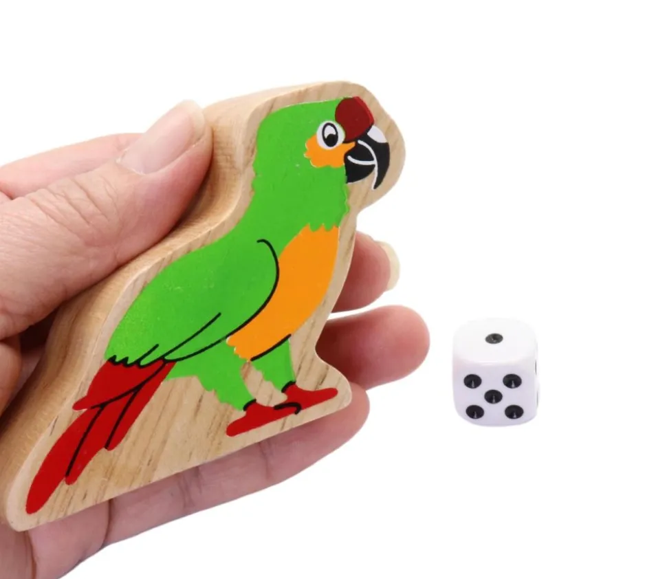Très beau jouet aux belles couleurs vert jaune rouge et traits noirs réhaussant les détails du bec, de l’oeil, des plumes et des pattes. Ce joli perroquet viendra compléter une belle collection d’oiseaux en bois de la même gamme ou agrémentera un jeu de construction pour créer un monde de la forêt tropicale, ou d’animaux sauvages