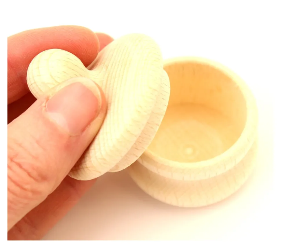 Petite boite en bois ronde avec son convercle. Vous pourrez y placer de petites pièces de jeux de société pendant la partie, l’utiliser comme boite à dent pour la petite souris, comme mini boite décoration pour y ranger de petits trésors. Mini boite en hêtre de 45 mm avec un couvercle à poser pour la refermer.