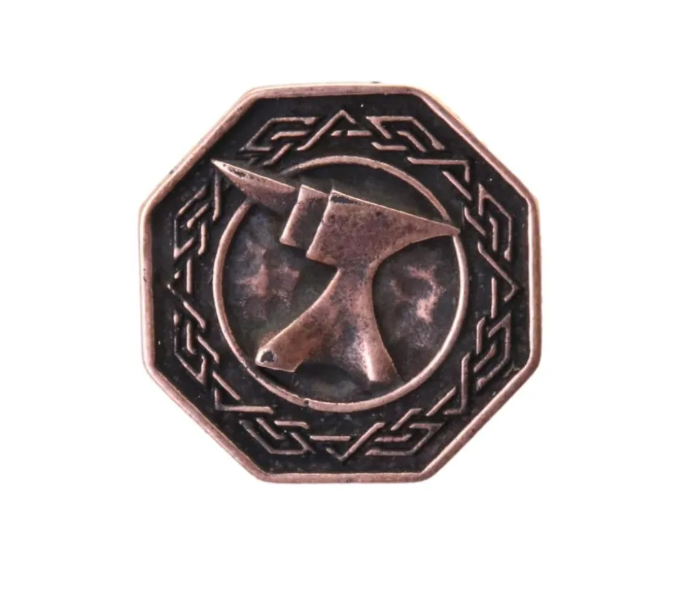 Cette pièce est gravée recto et verso sur le thème des forges Dwarven, jeu de rôle fantastique que vous pourrez utiliser pour créer des jeux de société.