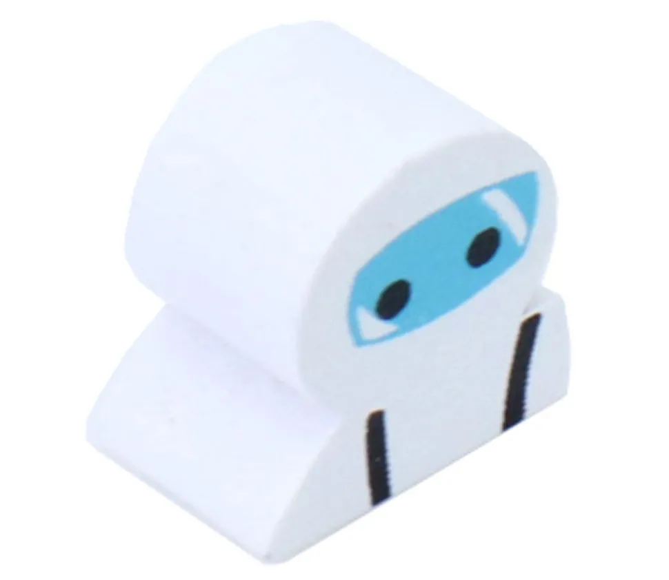 Petit jeton en bois avec décor recto et verso. Couleur de base blanc avec impression bleu, gris et noir du casque du cosmonaute.