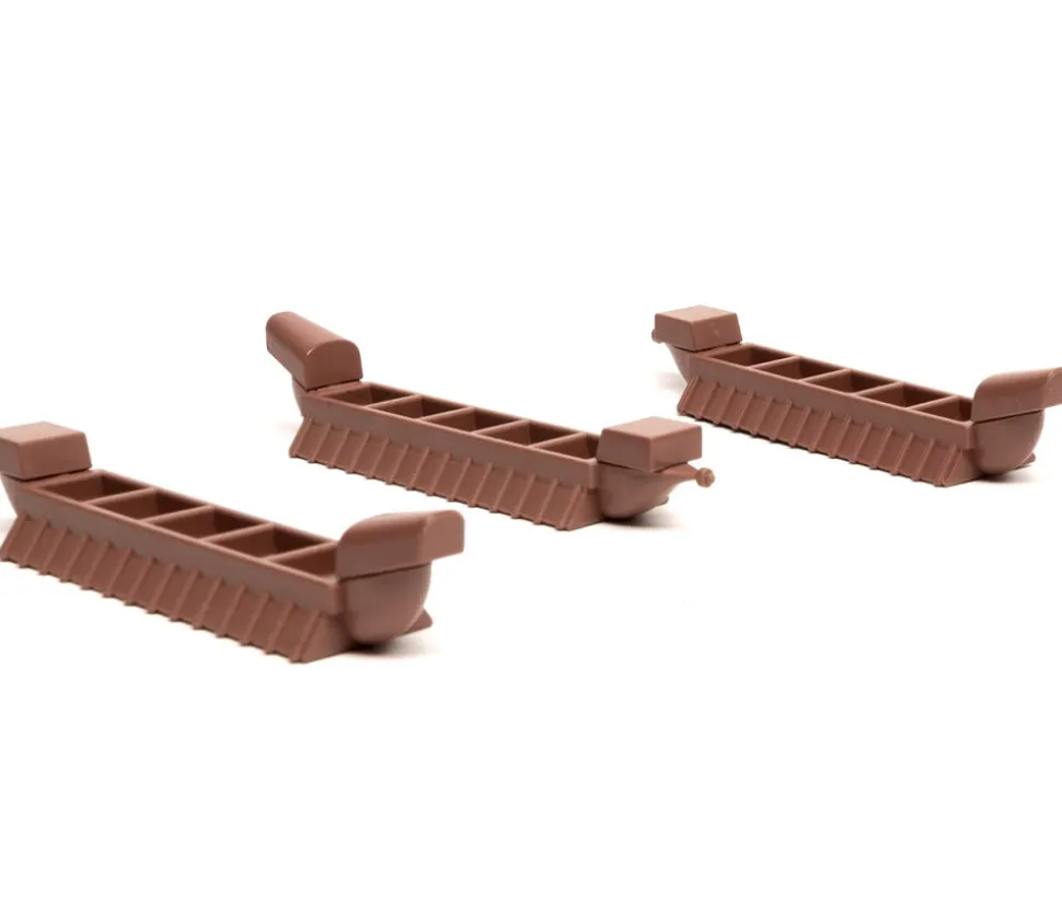 Pion en forme de bateau galère ou péniche. Bateau en plastique marron pour jeux de société, miniatures ou maquettes en forme de galère romaine ou péniche de transport dans laquelle vous pouvez mettre des petits cubes. Longueur : 9.5 cm, largeur 2 cm et hauteur 2 cm. Pion de jeux sympathique qui vous permet de transporter des ressources sur vos plateaux de jeux. 5 emplacements à l’intérieur pour mettre des cubes 10 mm (non fournis).