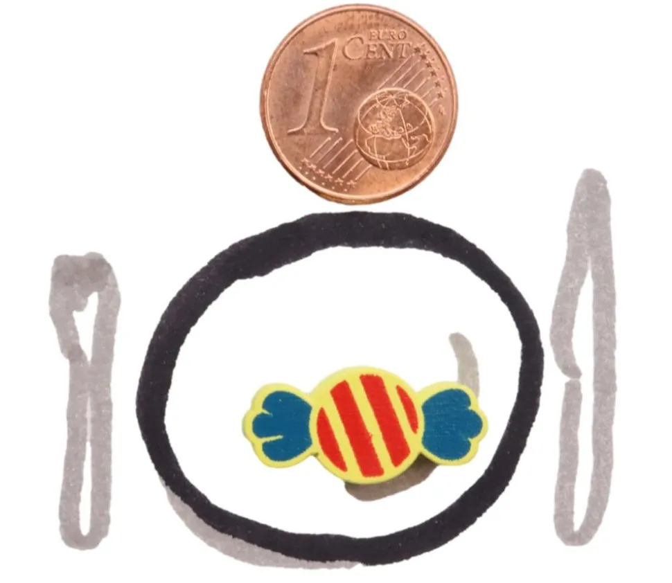 Jeton bois en forme de Bonbon en papillote. Dimensions du pion en bois : 2 x 0.8 x 0.5 cm.