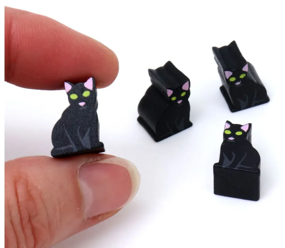 Jeton de jeu en bois représentant un chat noir .